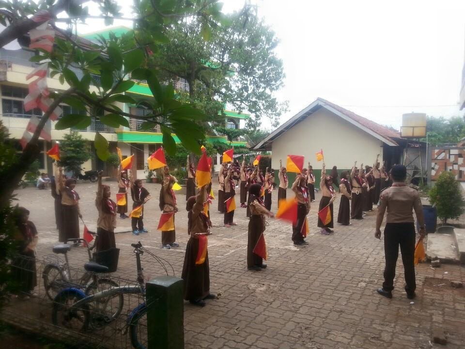 Siswa/i sedang mengikuti latihan semaphore