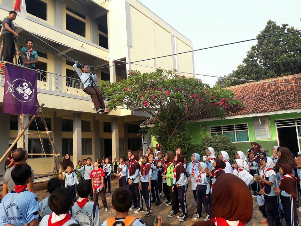 Siswa/i sedang mengikuti kegiatan kemah penggalang Gerakan Pramuka MI Nurul Islam Gudep 0703-0704 Sedang mengikuti kegiatan lomba pramuka